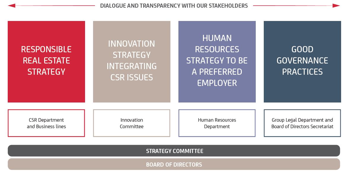CSR is integrated in Nexity’s strategy and is translated into practice by the fact that the CSR department reports directly to the Group’s Strategy Committee.